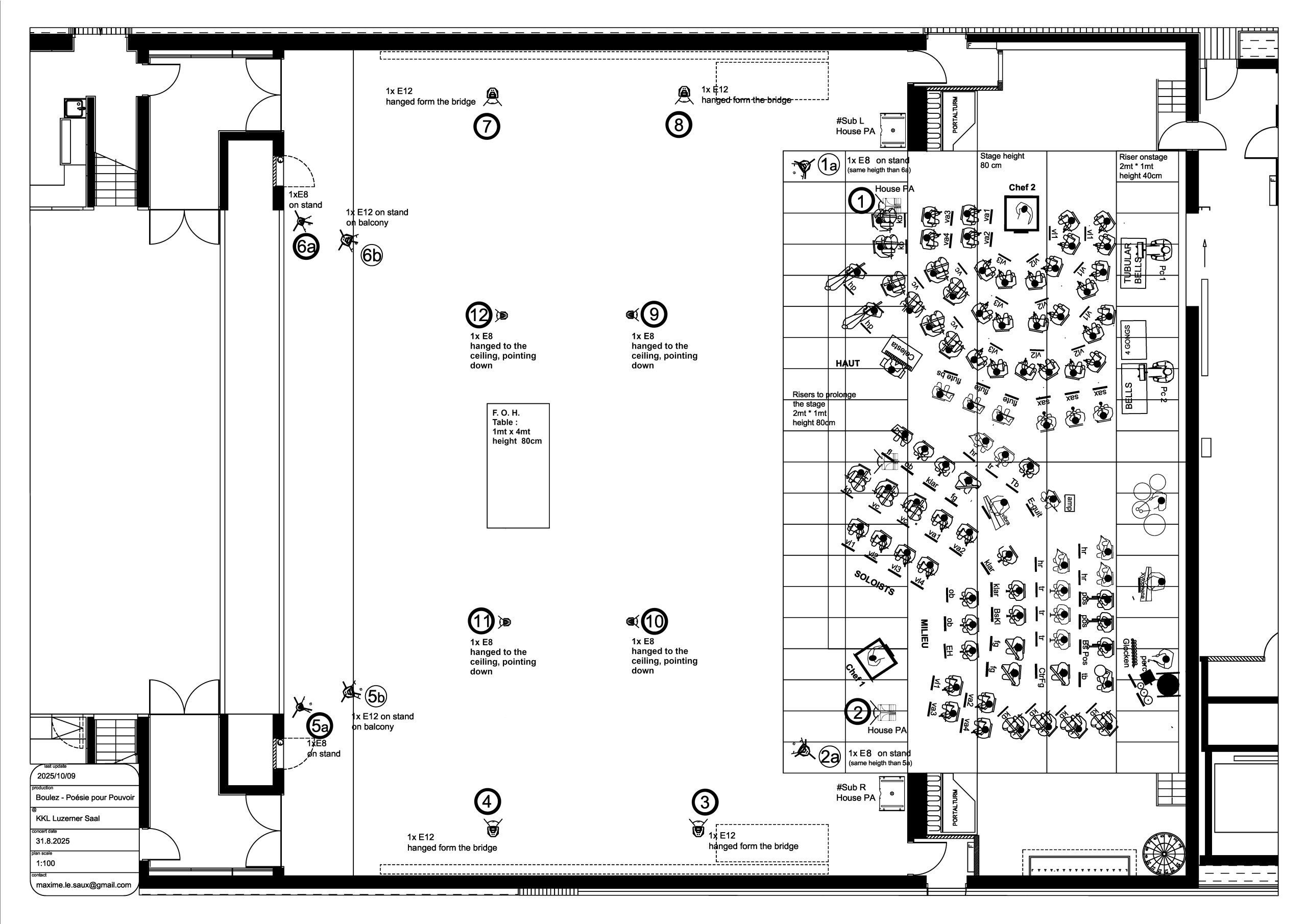 Ensuite, mon idée a été de séparer conceptuellement le matériel de l’électronique en couches superposées — un empilement qui correspond du reste à la structure pensée par Boulez. Tout en bas, on a l’orchestre (que l’on connait grâce à la partition écrite – photo ci-dessous). Tout en haut, c’est la voix qui émerge, élaborée avec des traitements comme frequency shifters, delays ou modulations. Et, entre les deux, l’électronique issue du traitement des accords orchestraux.