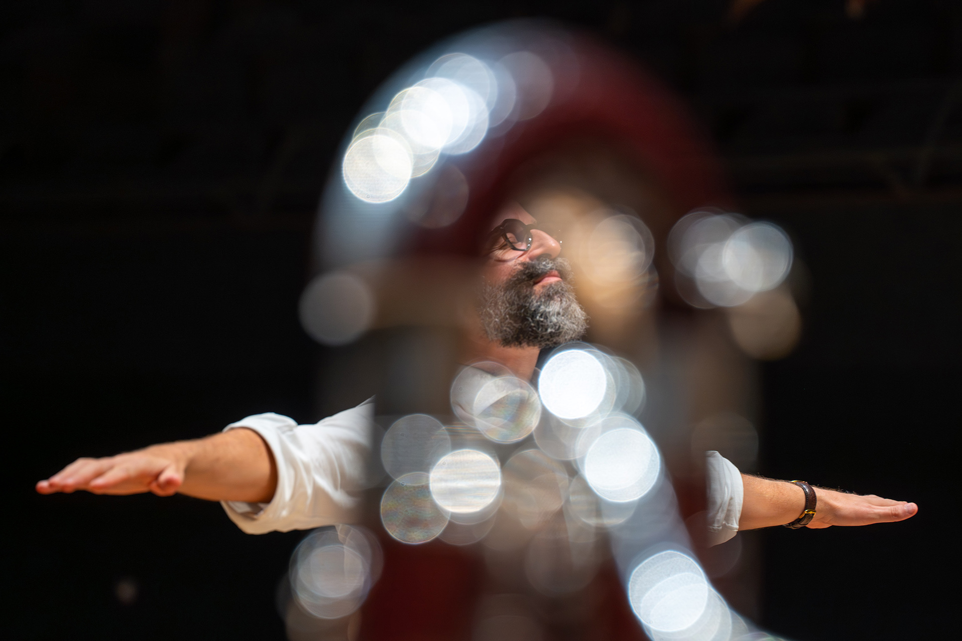 Très inspiré par l’inscription de l’humain au sein de son environnement, comme en témoigne le nom de sa Compagnie Les Insectes, Bastien David s’empare du format expérimental des In Between pour laisser éclater l’orage qui gronde en nous. Depuis 2019, les soirées In Between sont un laboratoire de nouveaux formats de concert et autres expériences musicales immersives. Cette année, l’inclassable Bastien David et sa compagnie Les Insectes profitent de l’invitation de l’Ensemble intercontemporain pour creuser le sillon ouvert en 2024 avec la pièce Je suis orage. L’orage, ce sont « les conflits intérieurs qui bouillonnent en nous, à s’en rendre malade, face à l’inacceptable ». Dans cette création scénique et musicale doublée d’un bal participatif, au cœur duquel trônera le Metallophone, instrument circulaire en 12e de ton de son invention, le compositeur nous invite à « troquer la complaisance pour l’amour » et à « laisser éclater l’orage pour que s’ensuive la pluie fertile ».